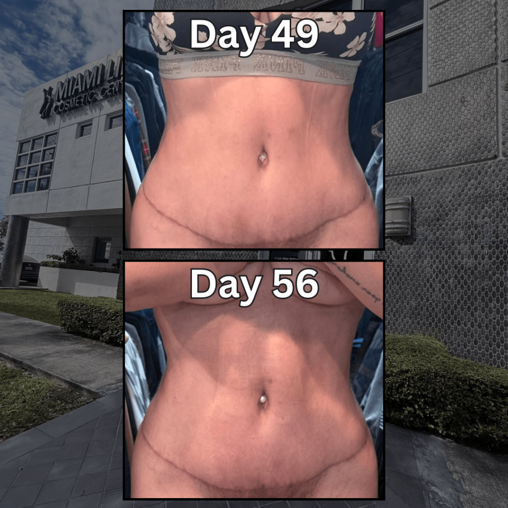 Recovery is such a mental game too. You expect to feel “done” by now, but your body is still healing in ways you can’t fully see yet. But when I compare day 49 to day 56, I can definitely see more definition starting to come through, especially in my waist and upper abdomen. That part gives me a lot of reassurance that even when I still feel swollen, my body is still changing. I just need to continue to be patient, which isn’t always easy.